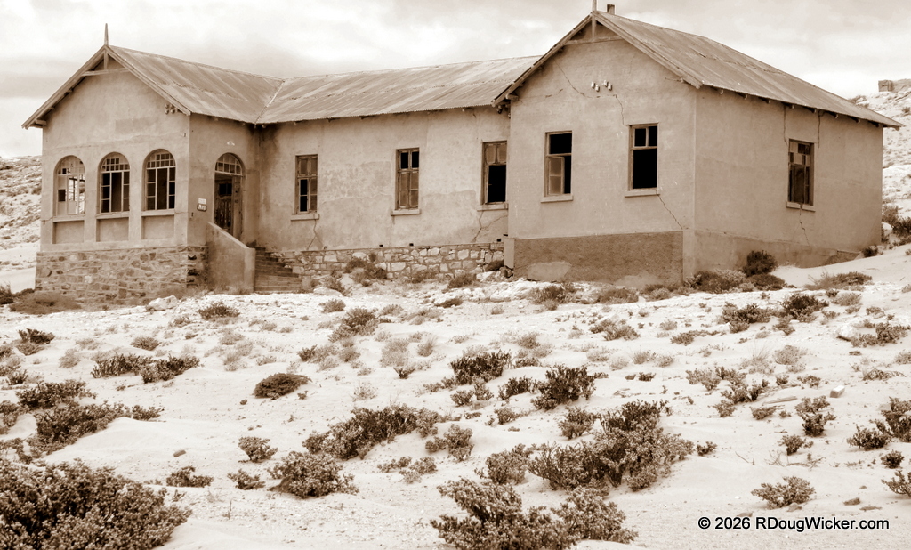My last travel series, which took almost a year to present to you, wore me down a bit. And since that trip, we’ve done even more extensive traveling — Cambodia, Thailand, Malaysia, Sri Lanka, India, Prague, back to Cape Town, another cruise up the west coast of Africa and to Saint Helena, and a return to Luxor. Those destinations were over two months-long trips, and I’ll be presenting those to you in the future. As for now, I need a break. So, for the next five weeks I’m going to present a special photographer’s dream — a ghost town. With one exception, all the photographs over the next fifteen articles will be color-filtered black & white. For tips on what that means, see my photography articles: Black & White Photography—It’s All in the Color! and More Fun with Color Filtering for Black & White Photography. As for this series, expect minimal text and maximal photography. The location of this ghost town will remain a secret, for at least most of you, until the last Fun Photo Friday of this series. And while I did all the B&W conversions and most of the photos, some of these were taken by Ursula. Those will be so designated. I hope you enjoy the show!