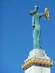 As you look in the viewfinder or the LCD screen, imagine two vertical and two horizontal lines dividing the scene into a grid pattern of nine equally sized blocks. Better yet, if you have a camera that will superimpose such a grid on the screen for you, by all means set the camera to do so. Now, that center block you either imagine (or see, if you just set up your camera)? Do not place your subject in that box. If the subject is tall (such as a building) line it up on along one of those vertical lines. If your subject is, say, a landscape, superimpose the horizon underneath either the upper or lower horizontal line and off-center the main subject to one of the vertical lines. Better yet, put the subject of the photograph at the intersection of a vertical and horizontal line.
