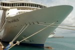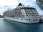 But the real excitement for me this port was the ship docked in line with ours. As many followers of this blog are aware, I’m currently writing a murder mystery set aboard a ship called The Globe, which is based upon the very real cruise ship The World. As such, I’ve been doing quite a bit of research on this vessel. So, imagine both my surprise and delight when, while seated for breakfast, I saw that the ship docked just off our bow was . . . you guessed it . . . The World. We even stopped and chatted with the security officer (ironically, it’s the security officer aboard The Globe who is both my story’s narrator and protagonist). And, no, we did not get a tour. That’s reserved for those who pre-clear through The World’s corporate headquarters in Miramar, California.