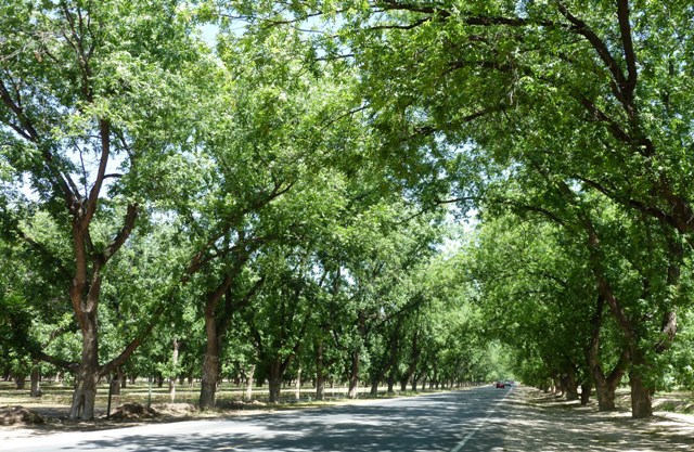 Along the way, convertible top down, wind blowing through our hair, we pass by fields of chili, onion, and cotton. Vineyards and rows of maze drift by as we maintain a leisurely motoring pace. We pass into the cooling shade of majestic pecan trees, their branches providing a leafy roof over the roadway, as we motor through the orchards of Stahman Farms.