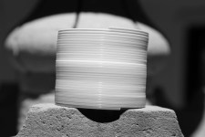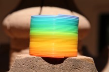 This first set of photographs show a multi-colored spring toy I like to use for color calibration. The first shot shows the rainbow spring in color (Canon Standard Picture Style). Following renditions (using Canon’s Monochrome Picture Style) are Unfiltered, Yellow Filtering, Orange Filtering, Red Filtering, and finally Green Filtering. Note how the yellow, orange, and red filters are basically just varying degrees of the same effect—gradually lightening the yellow-to-red range while darkening greens and blues. The green filter gives the opposite effect.