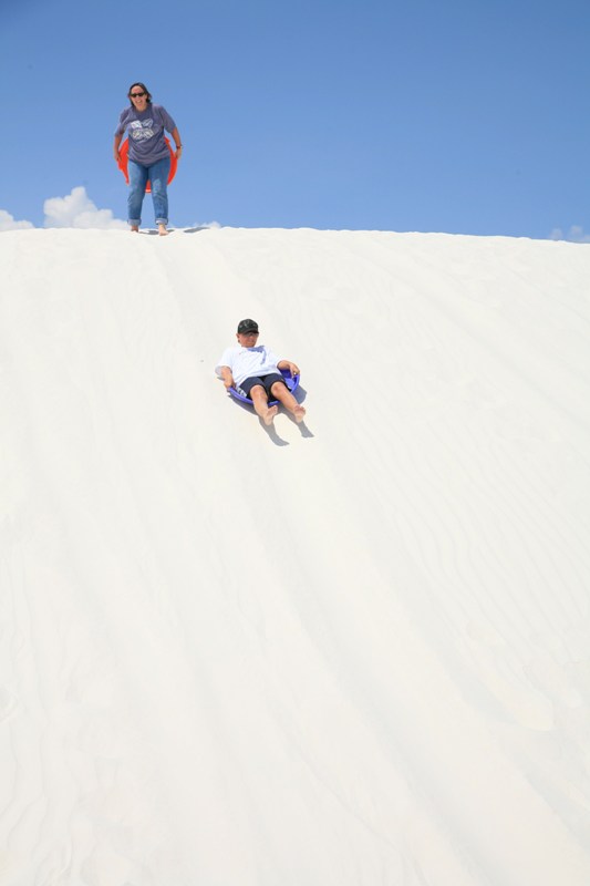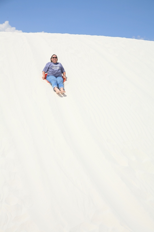 We were less than two hours drive from home with plenty of daylight remaining, but there’s a reason we chose to stop in Alamogordo. It’s called the White Sands National Monument, and it is home to one of the largest naturally occurring deposits of gypsum “sand” in the world. All told, these huge gypsum dunes cover an amazing 275 square miles (710 km²).