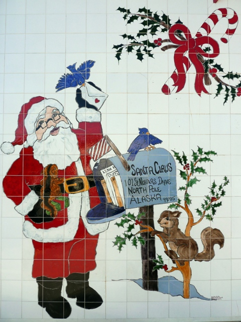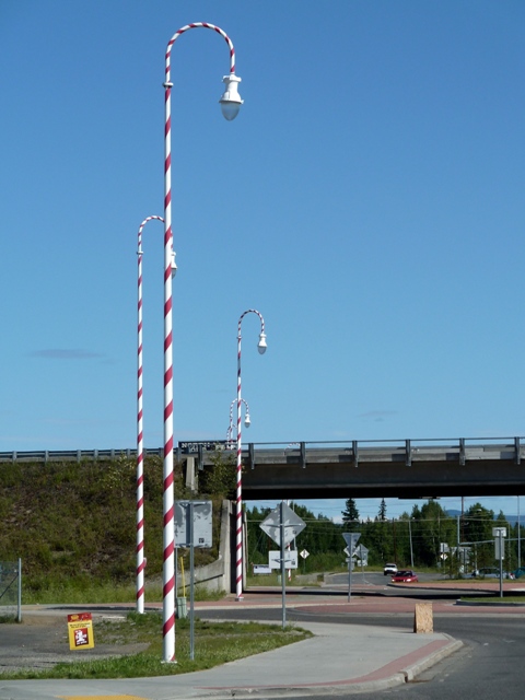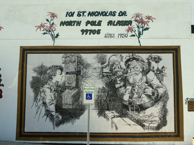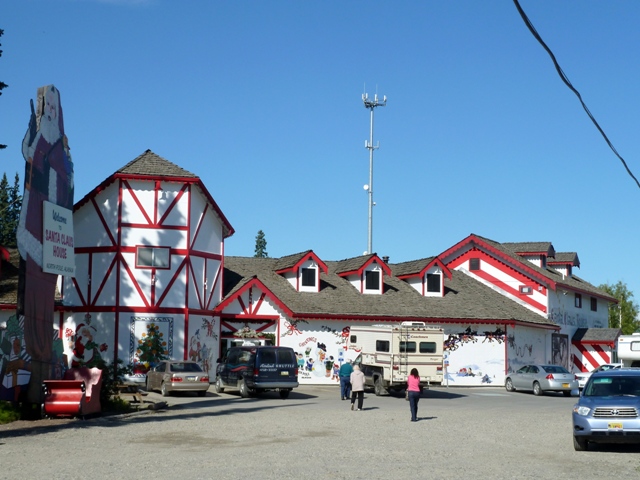 On Thursday we began our long, arduous North Pole trek. We hopped a bus, took off to the east southeast, and forty minutes later found ourselves in North Pole, Alaska. You thought I meant the North Pole. Nope. I’m talking about that other North Pole. This is the North Pole that gets all those letters mailed to Santa Claus every year during that very special time, and the main attraction and claim to fame is an establishment known as Santa Claus House. This small town comes replete with Holiday-themed street names and streetlights disguised as enormous candy canes.