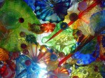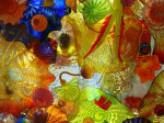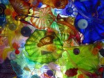 Especially colorful and very fun to photograph are the artworks of Dale Chihuly in the incredible Chihuly Bridge of Glass. The walls are lined with individual pieces displayed within enclosed glass walls. But it’s the ceiling that will really get your attention. Above you, light streaming through, are colorful works of hand-blown glass pieces overlaid in a jumble of intense colors, shapes, and textures.
