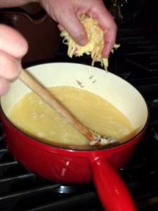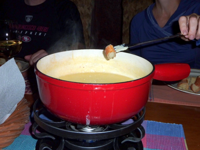 I’m told that the ever-so-slightly scorched cheese at the bottom of the pan is quite the delicacy. Of course, you have to have enough people eating your fondue that you get to the bottom before too much scorching happens.
