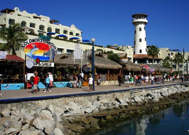 Today we visit Cabo San Lucas. Cabo is Ursula’s and my favorite Mexican destination. This incredible, enchanting place is located at the southernmost end of the Baja California Peninsula. It’s a bit more modern than the old section of Puerto Vallarta, and light-years beyond the traditional fishing village of Ixtapa, but it has a charm that transcends the ubiquitous mega-resorts populating the Mexican coasts. Shopping is fun without the super high-pressure sales tactics of other resort areas (it’s just high-pressure here; not super high). Dining is exquisite, with countless venues from which to choose. By the way, that 90-foot lighthouse “landmark” you see tourists fawning over and framing in their viewfinders? It’s a fake. Inside is the No Worry’s (sic) Beach Club (a bar and grill), and at the very top is a solitary table for VIPs and the well-heeled. Even so, go ahead and snap away. Everyone else does.