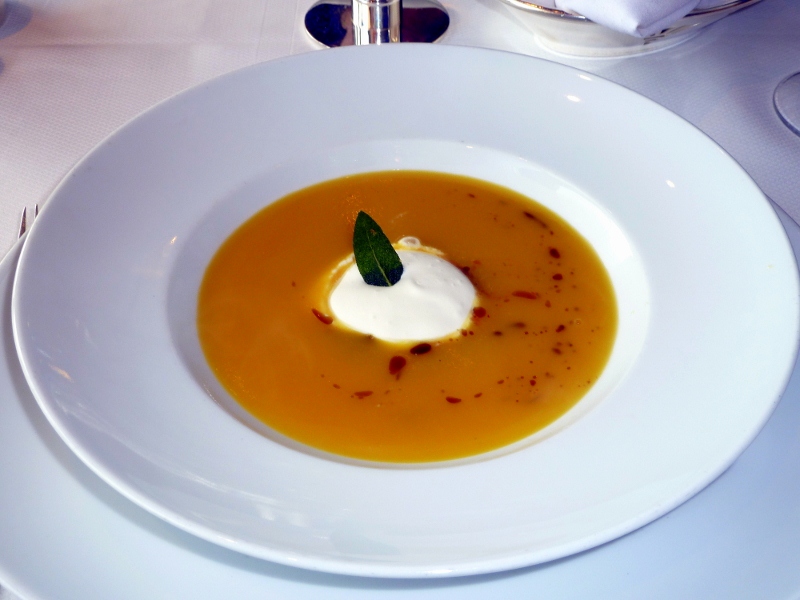 Butternut Squash Soup with Huckleberries and Sage Chantilly