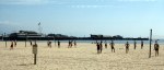 There are some fun things to see along this stretch of beach: piers loaded with restaurants, yachts plying the waters, volleyball players enjoying the sun, and many more examples of Spanish Colonial Revival architecture.