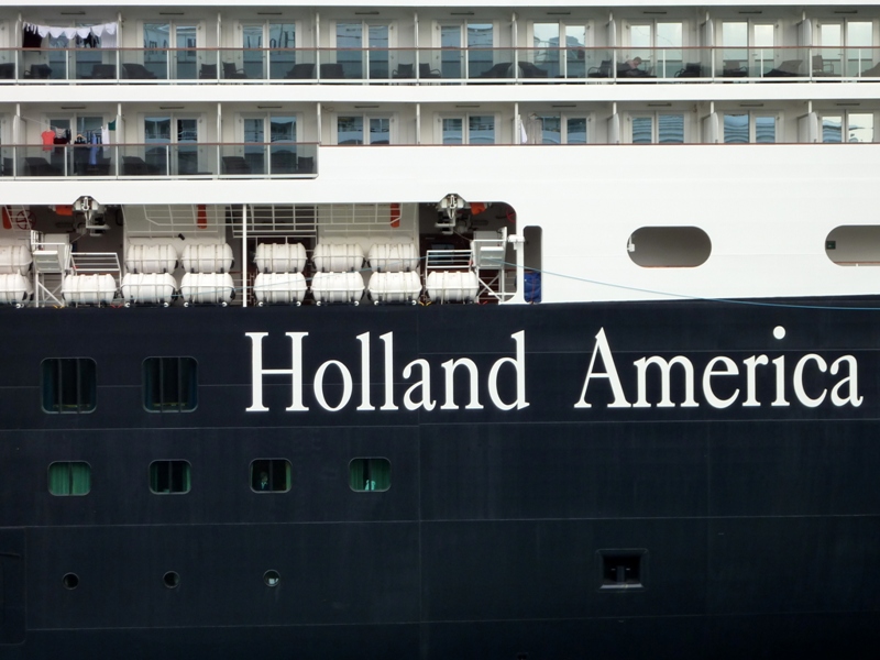 In the first photo you will see the blue hull and white superstructure of Holland America’s Eurodam, alongside of which our own ship, the Prinsendam (coincidentally the smallest ship in the fleet), was docked in Piraeus, Greece (the port city serving Athens). The reason I took this shot is not immediately obvious to the observer, so I’ll direct your attention to the upper-left corner of the shot. Bear in mind that the Eurodam at the time was Holland America’s newest and largest ship — the pride of their fleet — and there, hanging outside two of the balcony suites is . . . yep, laundry.