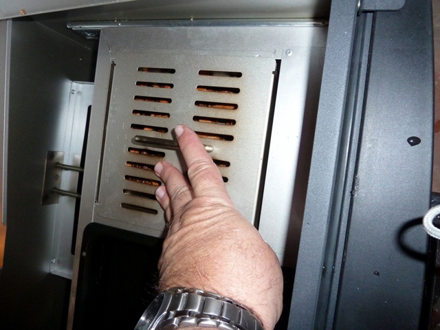 Checking progress: In half an hour or so the smoker should be up to the set temperature. Take a look at the smoke coming from the vent (use a dark background in bright light for a better sense of how much smoke is exhausting out the vent). The smoke should be visible, but not obscuring. If too much is coming out, consider opening the vent fully to purge excess smoke, or remove some of the chips from the smoker box.