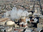 Being in a moving helicopter, Ursula did as best she could to capture the action.  Alas, the R44 was in a turn at the precise time the demolition charges detonated.  Even so, she managed some spectacular shots not only of the City Hall going down, but also of El Paso’s downtown area.