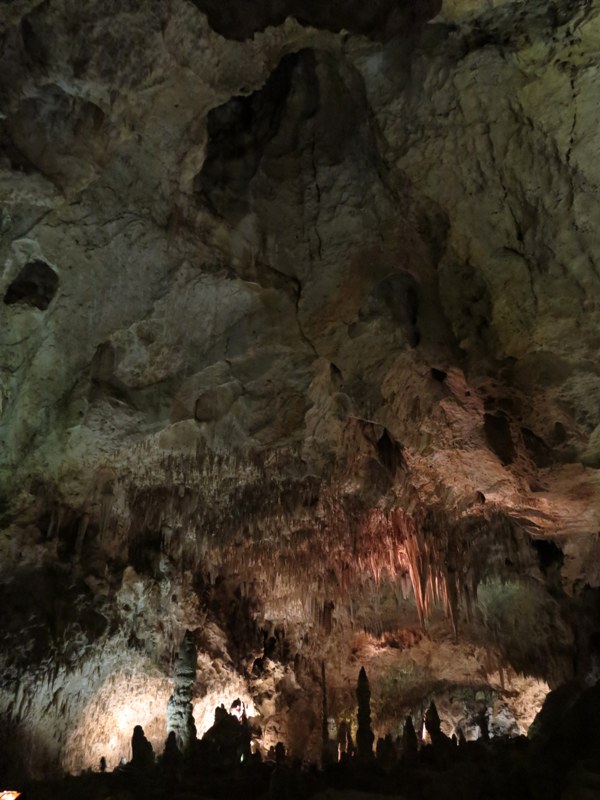 Most of today’s pictures are of the Big Room — the largest portion of the caverns. The hallmarks of the Big Room are the immense columns reaching high above the cavern trails and the “Top of the Cross,” the point on the ceiling of the cavern that is the highest above the Big Room floor. “Top of the Cross” is an intimidating 255 feet (78 meters) above, and one shudders when looking at photographs of the spelunkers who hung suspended beneath it during an expedition back in the 1970s.