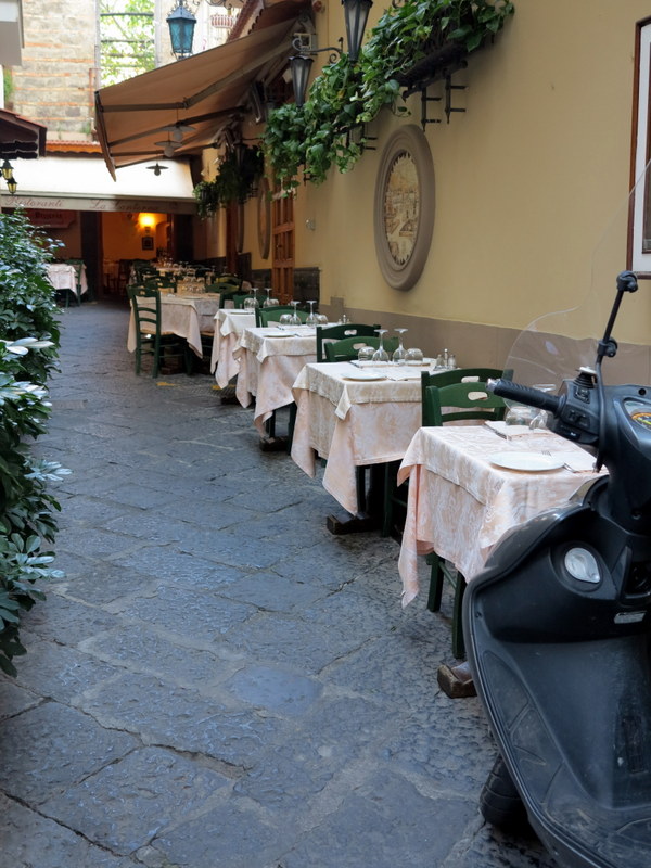 On this trip, however, we were not interested in visiting the ruins of Pompeii or Herculaneum. We also were not going to put up with that notorious Naples pastime — the infamous Vespa drive-by snatch-and-grab (watches, necklaces, and cameras are a particular favorite). Note to local authorities: You want more tourists spending dollars at your businesses? Get the thieves under control or we simply choose to take our spending elsewhere and your cafés will look like this: