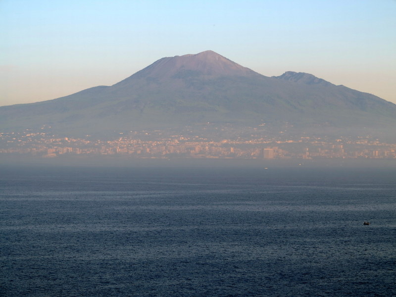 Our ship the MS Ryndam reached the Italian port of Naples on Friday, October 25. In the distance we saw the only active volcano on Continental Europe (all others in the region are island volcanos) — the deadly 3,900-foot tall (1,100 meter) Vesuvius that in 79 A.D. wiped out the Roman population centers of Pompeii and Herculaneum, and which today still threatens the millions living in its shadow.