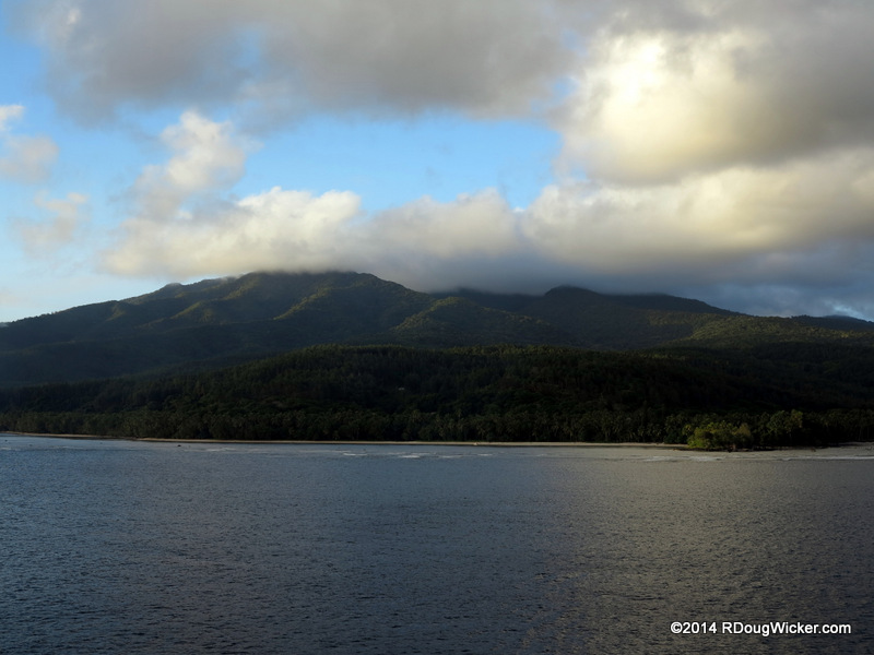 MS Oosterdam arrived offshore the morning after we departed Lifou, New Caledonia. Below you can see the ship anchored between Inyeug and the much larger Aneityum.