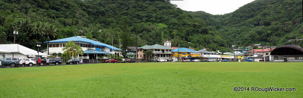 This final panoramic stitch was taken looking back toward village of Aua (note the blue-roofed church near the center) from Pago Pago near the Fagatogo Port and it’s fishing boats.