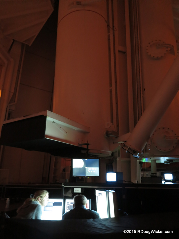 Very near the Dunn structure is another building — The John W. Evans Solar Facility. Inside the Evans facility are two telescopes — a 12-inch/30.5-centimeter coelostat and a 16-inch/40.5-centimeter coronagraph. I believe the following photo is of the coronagraph.