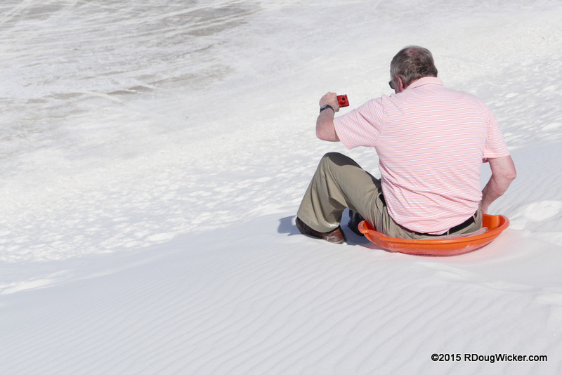 So, what is there to do here amongst the gypsum dunes of White Sands? Ride them, of course. You did bring your saucer and wax, right? We did.