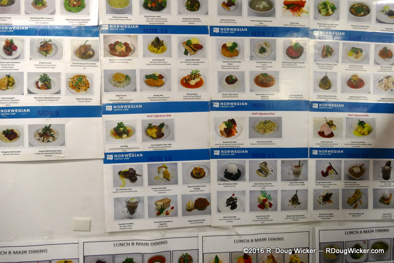 As you can see the kitchen is a pretty extensive operation. It has to be in order to serve some 2,000 passengers and nearly 1,000 crew. Attention to detail is important as well, as you can see by this kitchen mounted guide on how to plate the various menu items: