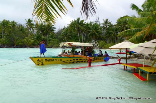 Our large tour group split among several Maohi Nui watercraft. Two groups, including Ursula and I, opted for the more adventurous outriggers, while others wound up in a more conventional tour boat.