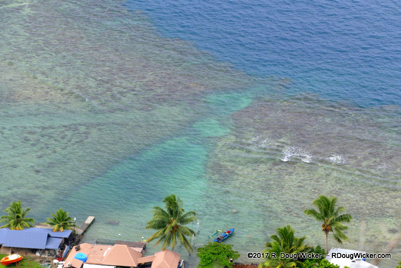 There is a lot to see and do on Mo’orea, so we spent the better part of the entire day touring the island. We, of course, were treated to great, high-vantage point shots of the towns, shoreline, and surrounding reefs, such as this: