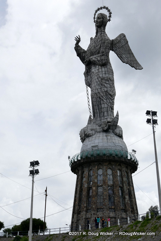 Virgin of Quito standing on a coiled dragon atop a globe
