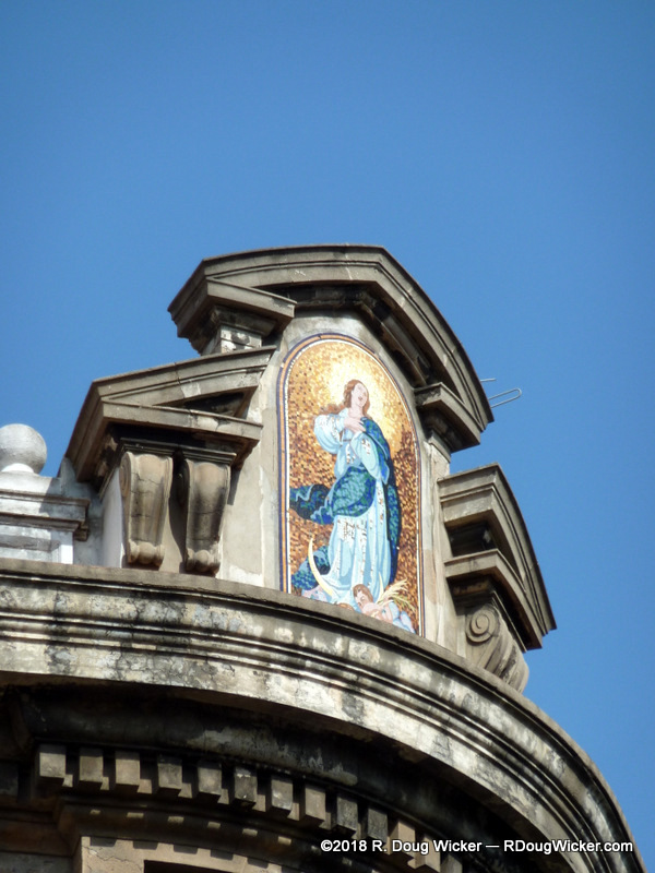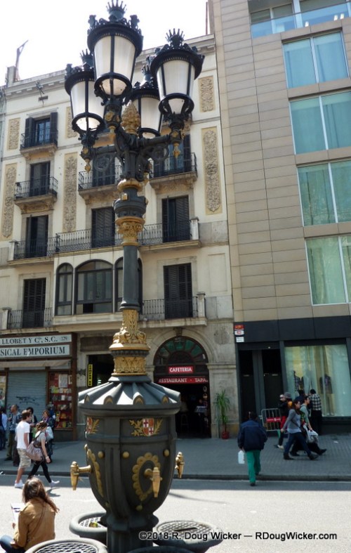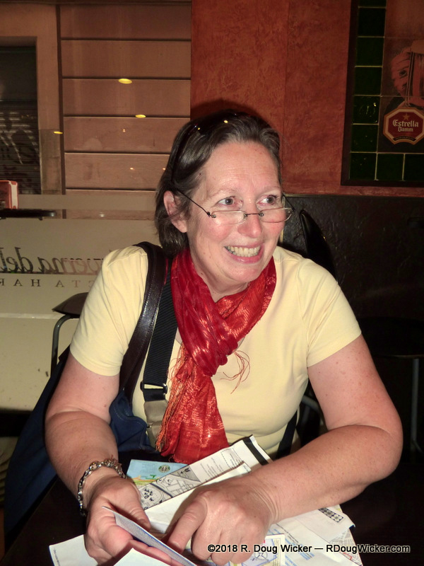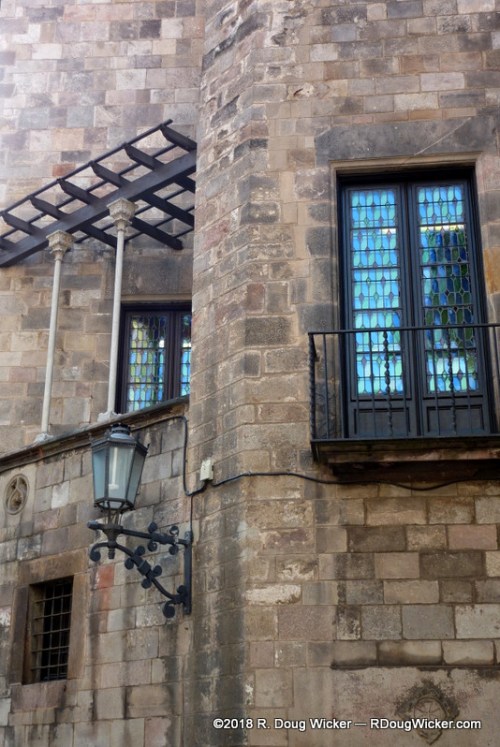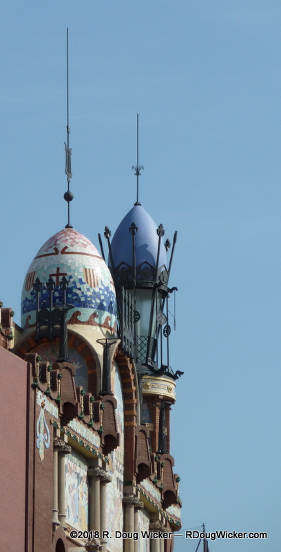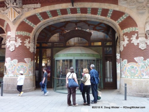 MS Prinsendam overnighted in Barcelona, affording us on the next day more time to spend exploring the city, and with much sunnier skies than we’d experienced the day before. So, we took advantage of the weather and, with our friends Bill and Joelle Travis who accompanied us to Montserrat Abbey the day before, we headed out and about. Here is our little group in front of a very Gaudí -like building, the Palau de la Música Catalana, but this building was designed by architect Lluís Domènech i Montaner: