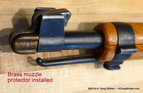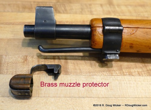 Another included piece of equipment, which you can also find online, is a brass muzzle protector that clips in place over the front sight.