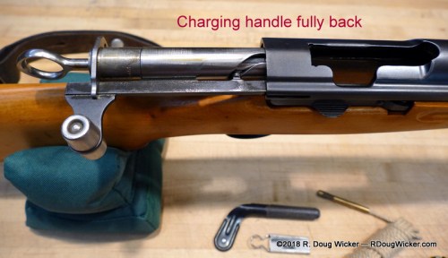 - Lift up on the bolt handle, thus rotating and unlocking the bolt