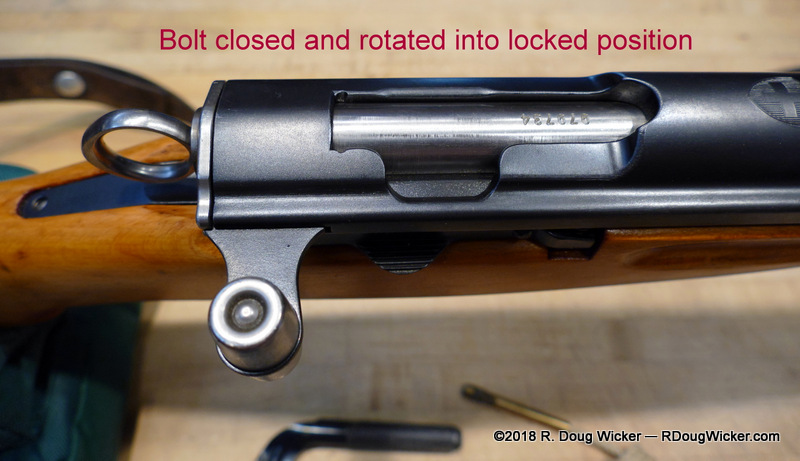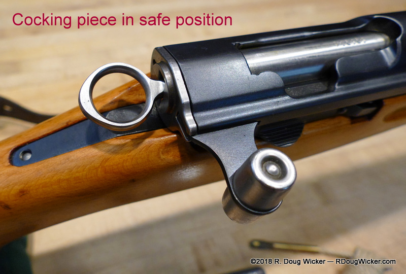 But, if the cocking piece has been pulled, rotated clockwise, and then recessed back into the bolt, then the weapon has been placed into a ‘safe’ mode. The firing pin is held back away from the cartridge primer.