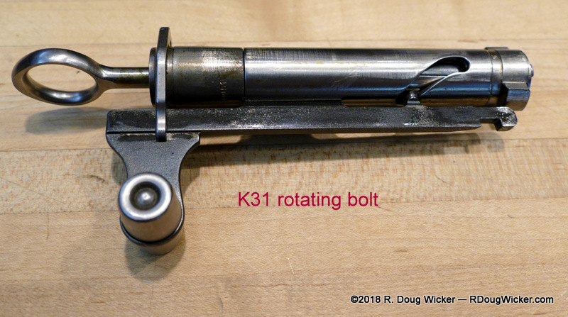 Now for that previously mentioned ‘straight-pull’ bolt action. Most bolt action rifles, including K31 military contemporaries such as the German Mauser Karabiner 98 kurz (K98k), require four movements to eject a spent casing and chamber a fresh round: