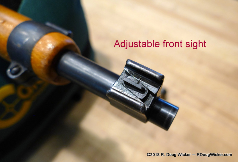 And then there are the front and rear sights. You shouldn’t ever have to drift the front sight unless somebody fooled around with it after it left the armorer. But if your K31 is hitting left or right of target, the front sight can be adjusted by drifting it forward and backward along a rather unique slanted grove. At the nominal 300-meter/328-yard sighting range for the K31, a 1 millimeter movement of the front blade sight results in a 12-centimeter/4.7-inch change in the point of impact.