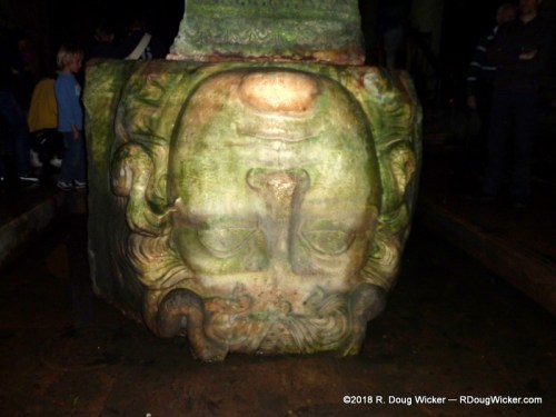 Many of the 336 columns supporting the cistern roof were re-purposed from other structures. These columns average 30 feet/9 meters in height. Some of the columns also come with a surprise or two, including base support from the snake-haired Gorgon Medusa. But the two busts of Medusa you’ll find here are not in the expected orientation. One lies sideways, the other is inverted.