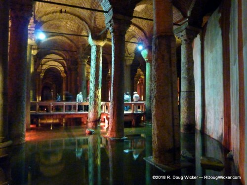 The Basilica Cistern is a mere 500 feet/150 meters west of the Hagia Sophia, and it’s well worth the visit. This amazing cistern measures 453 feet/138 meters by 213 feet/65 meters. It has a capacity of 2,825,000 cubic feet/80,000 cubic meters, or about 21,130,000 gallons!