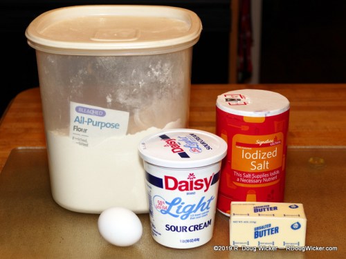 - In a large mixing bowl, mash with a fork the softened butter. Mix in the room temperature egg, sour cream, and salt and stir together until the butter is in small, curd-like pieces.