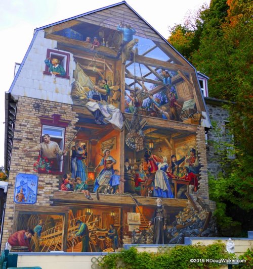 You’ll also find in Lower Town Quebec a couple of beautiful frescoes. The fresco pictured below is the Rue du Petit-Champlain mural located at 102 rue du Petit-Champlain in the Quartier du Petit Champlain. This mural depicts some of the history of the area, including the bombardment of Quebec (1759) during the Seven Years’ War, as well as other disasters that have befallen the city: