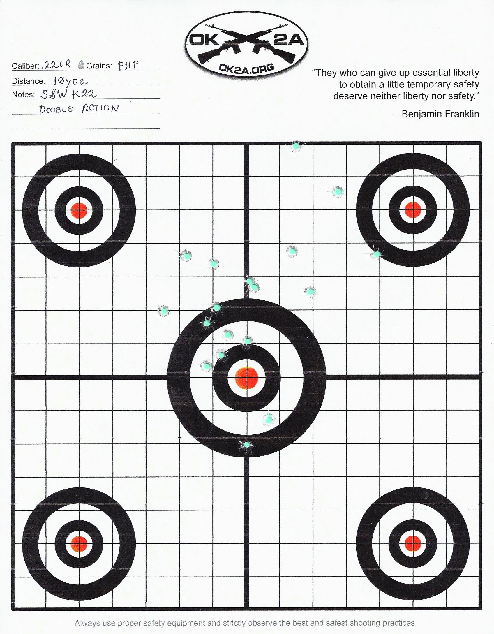 8.5×11 target, 10 yards, 18 rounds, double-action