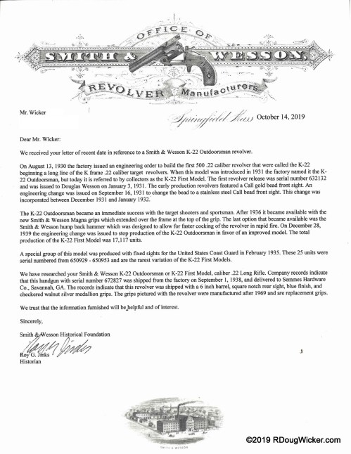 Most of the letter sent back from the S&W historian is boilerplate typical of other S&W history letters I’ve seen: