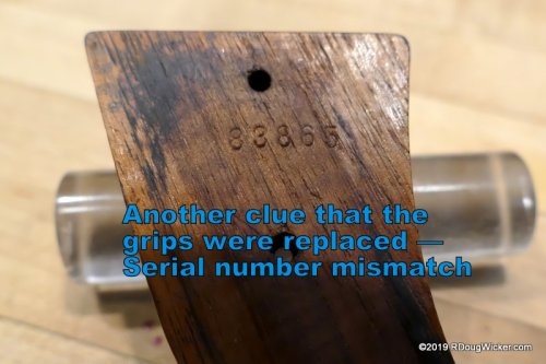 Once I got the K-22 home I removed the grips and verified that they were indeed not the originals. The factory-installed grips would have the gun’s serial number marked on the insides:
