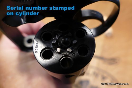 And, finally, as we have the cylinder swung out away from the frame, let’s turn over the gun and look at the flat portion at the base of the barrel for one more match: