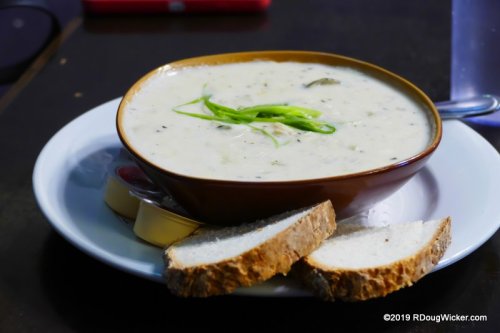 The meal was a definite winner. Ursula proclaimed the seafood chowder served with Irish soda bread a hit, and after tasting it I had to agree with that review: