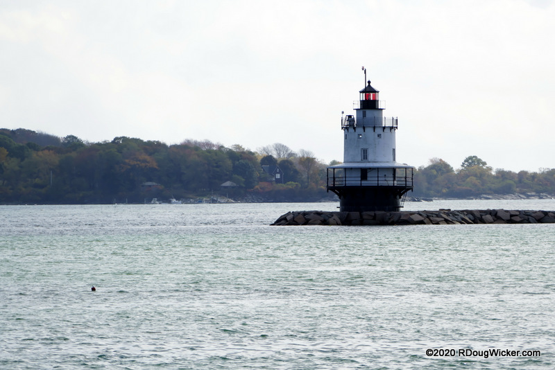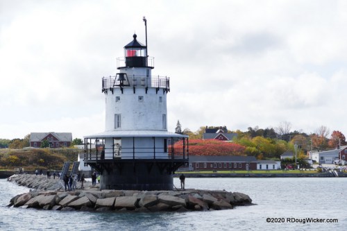 As our tour boat headed onto Fore River and into Casco Bay, one of the first sights of interest pointed out to us was Portland Breakwater Light, also called the Portland Bug Light. This is a smallish lighthouse of a design knows as a caisson, sparkplug, or bug lighthouse, hence the ‘Bug Light’ name. Portland’s Bug Light dates back to 1875.