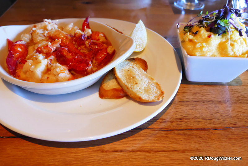I splurged and ordered off the dinner menu. I went with the ‘Admiral’s Portion’ of the ‘Lazy Lobster’, which is lobster already liberated from the shell and served in butter. Along with it I opted for the cheesy polenta, which was okay but not great (I prefer my own crispy polenta):