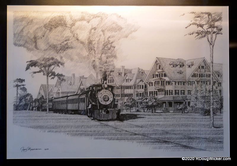 This next piece of art is from another artist, and depicts the Belleview from when Henry Plant ran a railroad line past the front entrance: