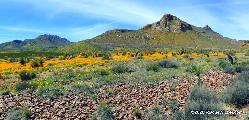 See Monday’s blog article for a primer on El Paso’s annual blooming of California poppies along the eastern slopes of the Franklin Mountains. I’m also going to throw in, over this week and the next, some blooming cacti images, some recent El Paso sunset shots, and some photos of this month’s earlier Super Moon: