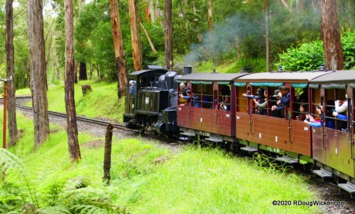 As I mentioned on Monday, we took an abbreviated trip on Puffing Billy. Our point of origin was Menzies Creek Railway Station, and our destination was the main railway station at Belgrave. So, whereas on Monday’s article I showed you the full five-station route, today I’ll present to you the truncated route we took from Menzies Creek to Belgrave: