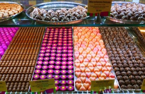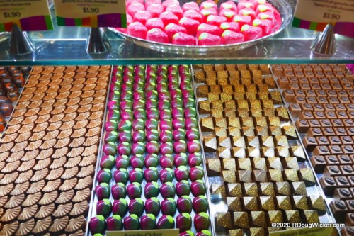 You can see the factory portion of the shop behind the bunnies above. It was quite an operation. And the chocolates? Yes, they were as good as they looked. Ursula and I purchased quite the assortment thinking we might take some back to Radiance of the Seas, but they didn’t survive long enough to reach the exit.