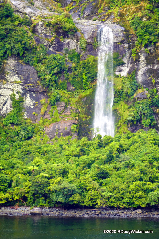 March 2019, and the weather was truly our friend as our ship Majestic Princess traversed deep into first Milford Sound, and later Doubtful Sound. I’ll go into more detail on these two areas when we view the return trip photos taken a year later. That series will start in twelve days, on 14 September. As it was, our time in Milford Sound this day started out cloudy:
