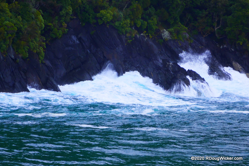 Before entering the fiord the water was just a tad on the choppy side, with waves crashing along the distant shoreline: