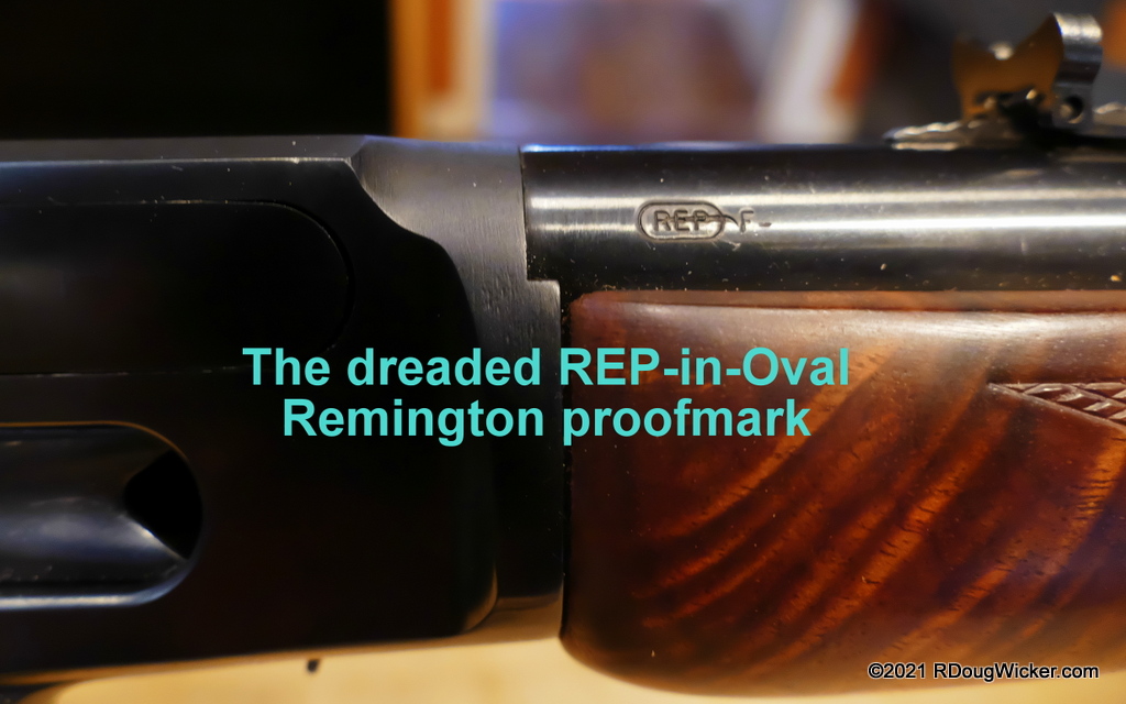 But then there’s the proof mark. If you have a Marlin with a “JW” proof mark, then you have a true Marlin-made Marlin. If your serial number doesn’t start with “RM”, then you have a true Marlin-made Marlin. On the other hand, if you have a Marlin with an “REP” inside an oval-shaped stamp, or the serial number starts with “RM”, then you supposedly have a Remington-made Marlin.